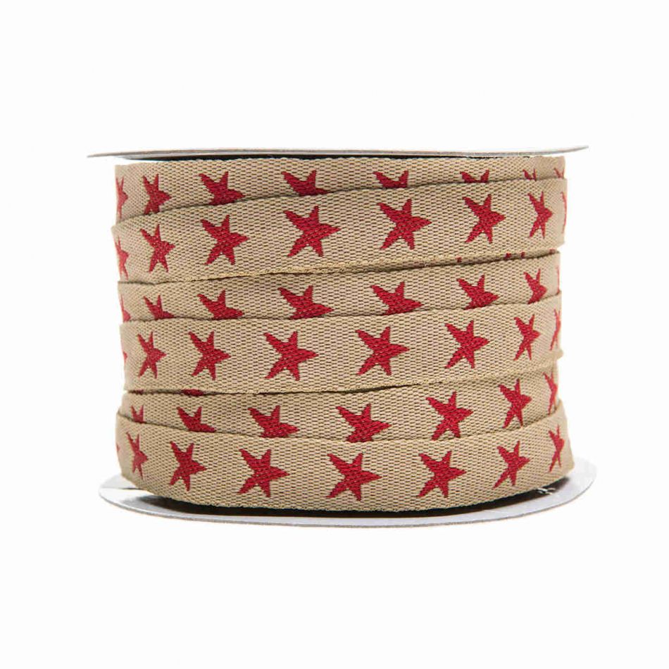 Band med röda stjärnor Brun/Röd. (3 meter) i gruppen Krans & Floristtillbehör / Textilband & Snören / Band till Jul hos Kransmakaren.se (2031225-001-a)