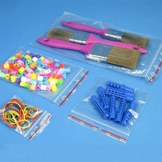 Transparenta blixtlåspåsar som är lätta att försluta.