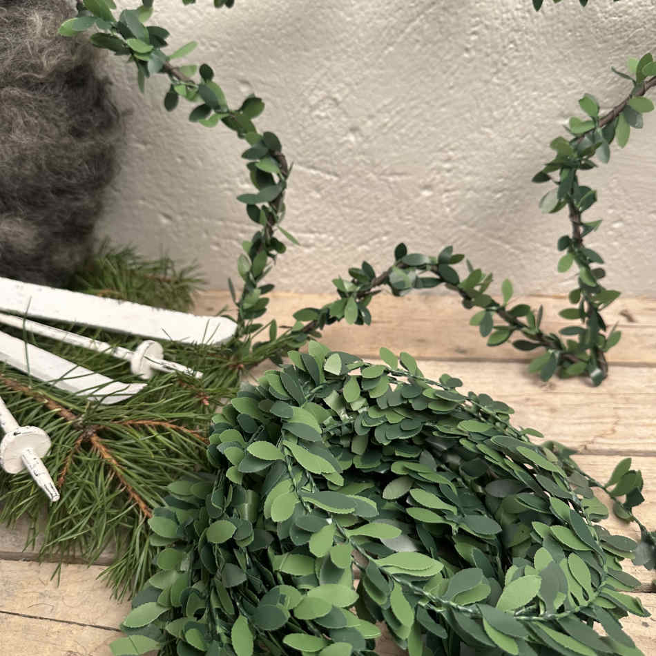 Konstgjord storbladig buxbom på ståltråd.
