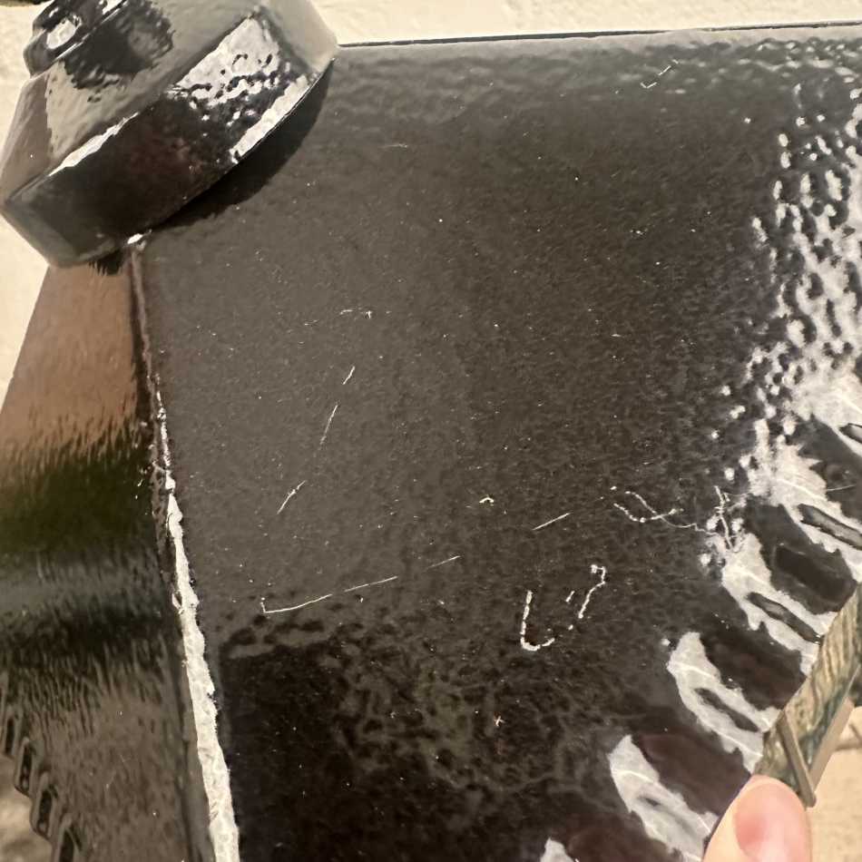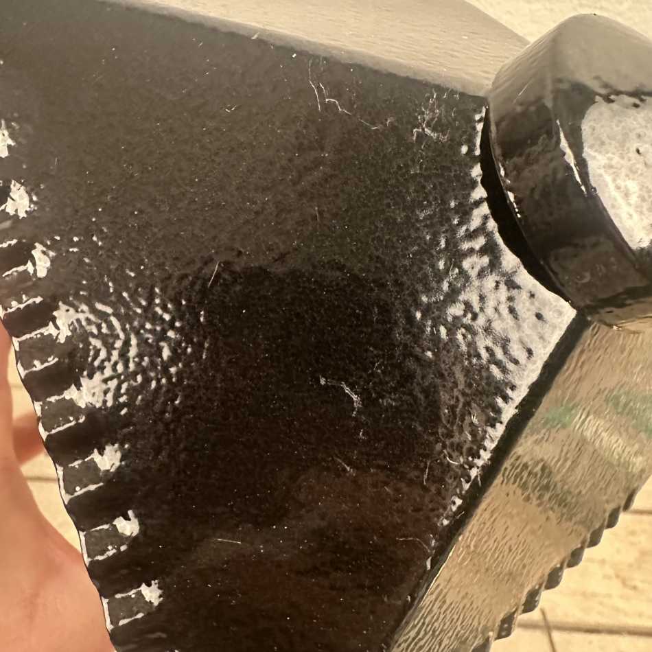 Det här exemplaret har små repor i lacken på taket samt att spjutet sitter snett. Fästet som styr in spjutet rätt i gångjärnen har släppt men när man väl har skruvat till spjutet så sitter det stabilt.