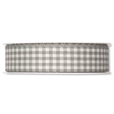 Rutigt textilband, Grå/vit. 25mm ( 25 meter) i gruppen Krans & Floristtillbehör / Textilband & Snören / Dekorband / Rutiga band hos Kransmakaren.se (4000-025-21-25)
