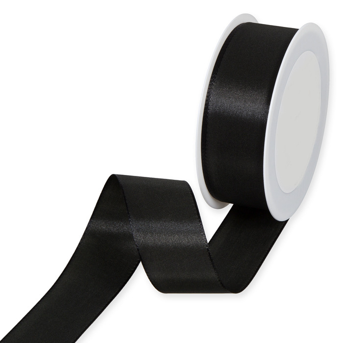 Polyesterband i svart som är lätt att forma och arbeta med och göra tex rosetter av.