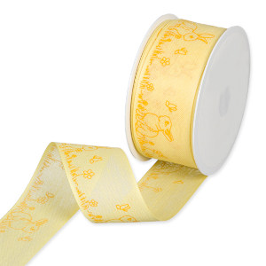 Motivet är tryckt på en sida av bandet i en mörkare gul nyans.